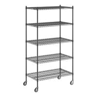 24" x 42" x 80" NSF Black Epoxy Mobile Wire Shelving Starter Kit with 5 Shelves