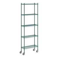 12" x 30" x 92" NSF Green Epoxy Mobile Wire Shelving Starter Kit with 5 Shelves