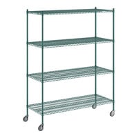 24" x 60" x 80" NSF Green Epoxy Mobile Wire Shelving Starter Kit with 4 Shelves