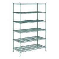 30" x 60" x 96" NSF Green Epoxy Stationary Wire Shelving Starter Kit with 6 Shelves