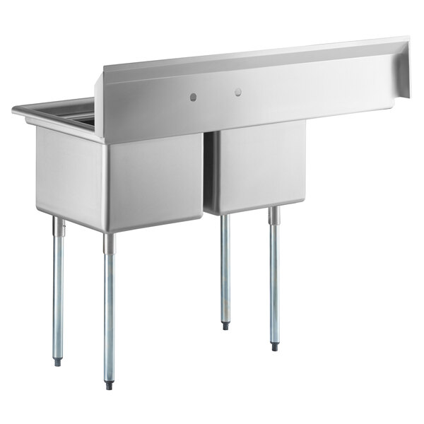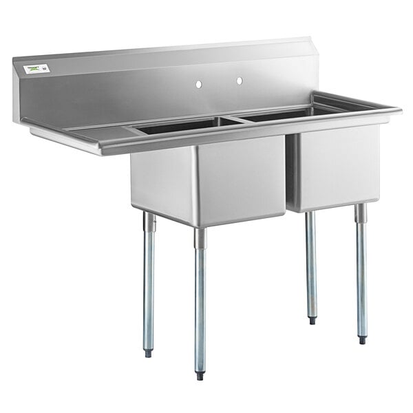 54 1/2" 16 Gauge Stainless Steel Two Compartment Commercial Sink with Ga...